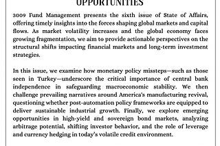 3009 Fund Management Investment Thesis