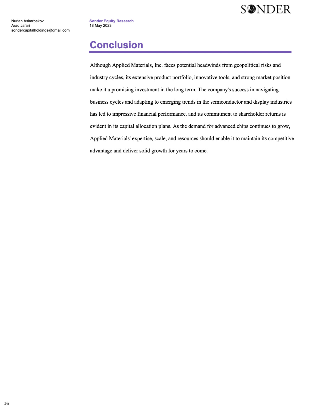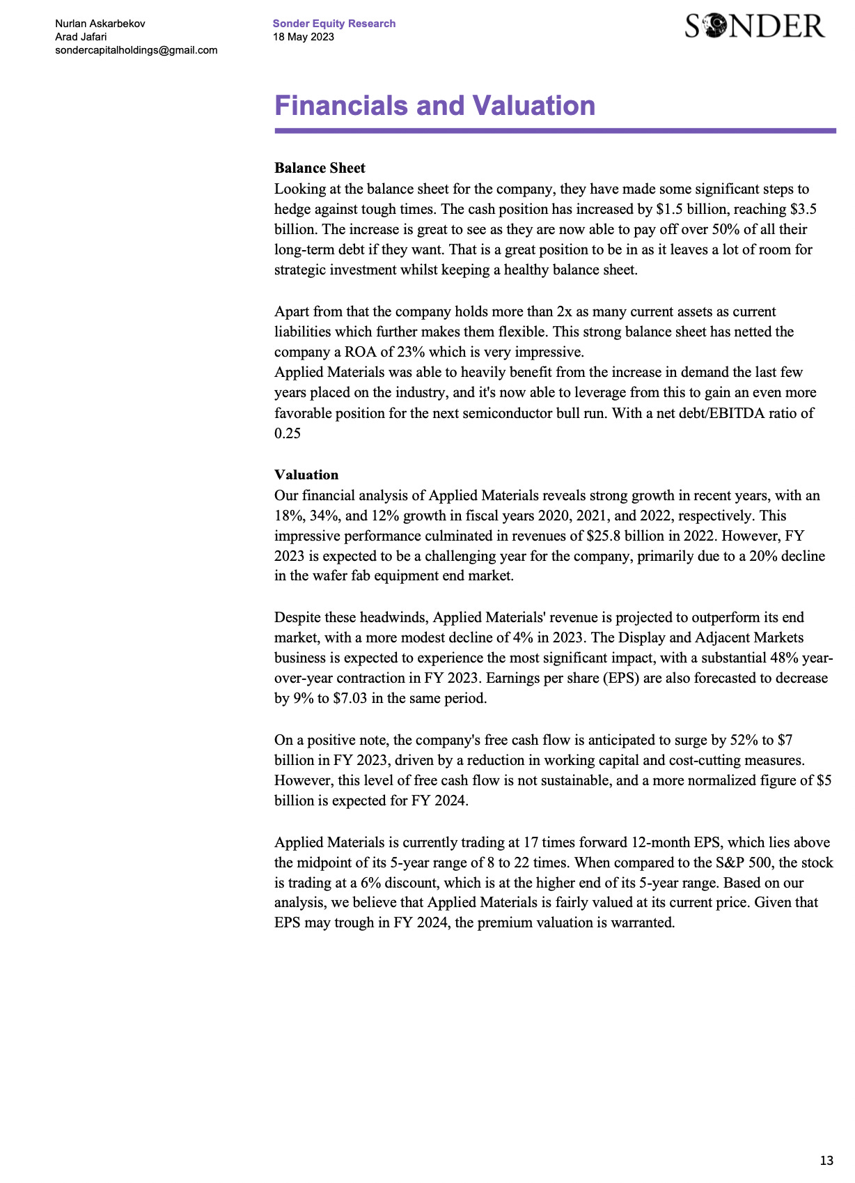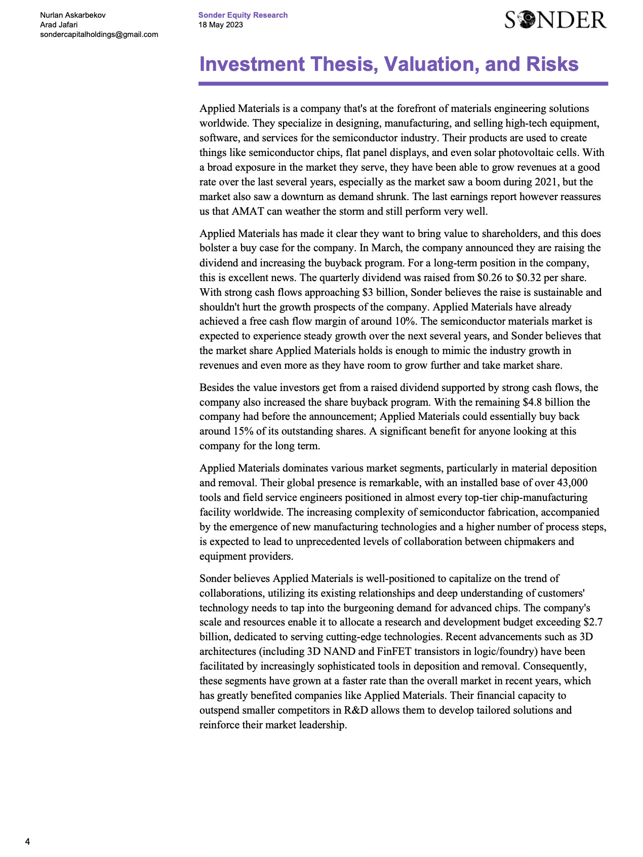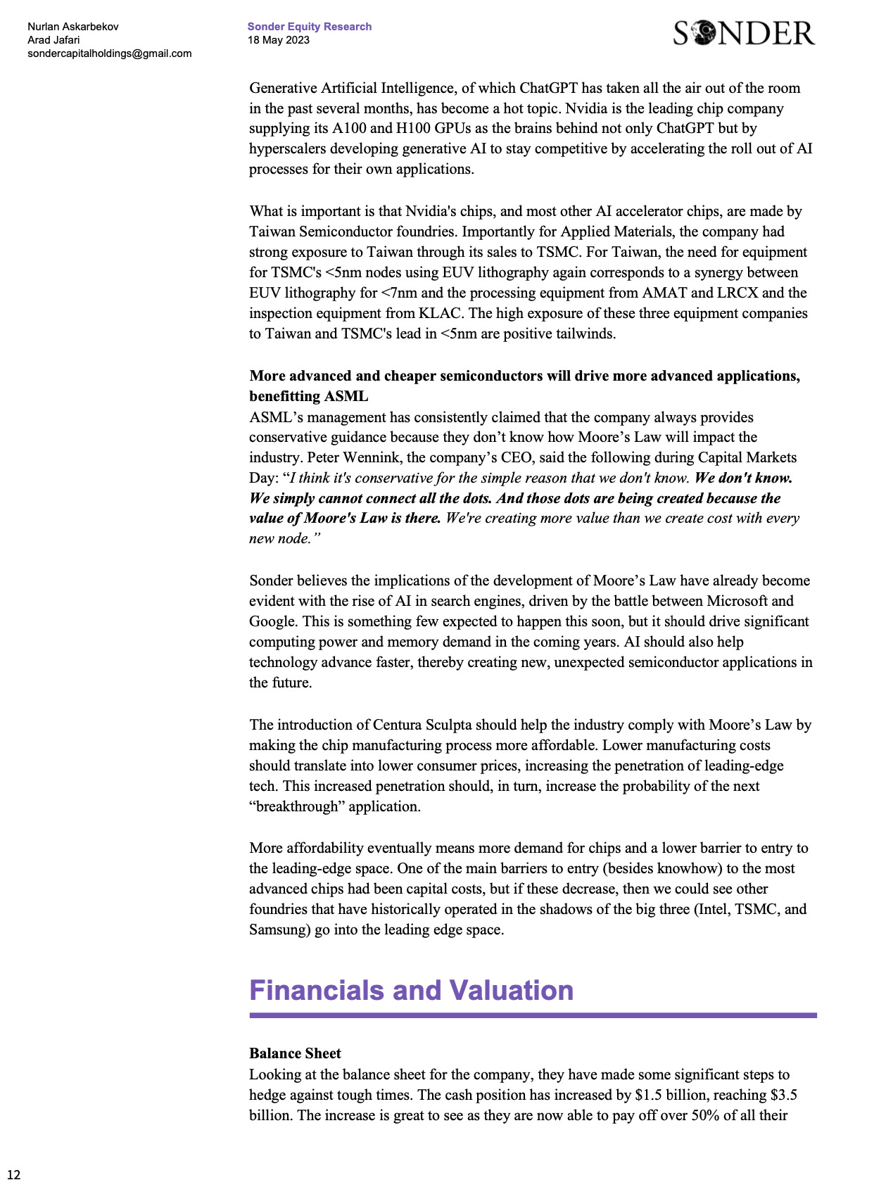 Applied MaterialsA higher quality version of the report is attached as a PDF at the end3009 Fund ManagementMay 18, 2023ShareSONDER’s Exploration is a reader-supported publication. To receive new posts and support our work, consider becoming a free or paid subscriber.SubscribeApplied Materials 24.97MB ∙ PDF fileDownloadDownload