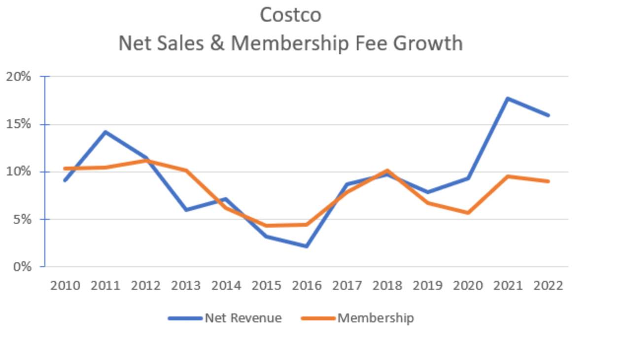 As seen by the chart above, there has been a decrease in both their revenue and memberships. I’m expecting this trend to continue and for Costco to lose even more memberships this quarter. Considering that these memberships are one of their main sources of revenue, a decrease in it will be a great disappointment to investors. The growth in sales leads to the same growth in costs associated, and due to their low pricing, most of their profit comes from the Membership Fees segment. This segment has grown by 9% in the last couple of years and the growth largely depends on signing up new customers rather than increasing membership fees as they have not increased the basic $60 yearly fee since 2017. I believe this type of consistent growth is going to be over for two main reasons.