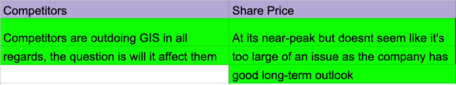 Kellogg is GIS’ largest competitor in the brands' fundamental sector- cereal. So looking at how Kellogg performs can give us a very good understanding of how GIS may perform.