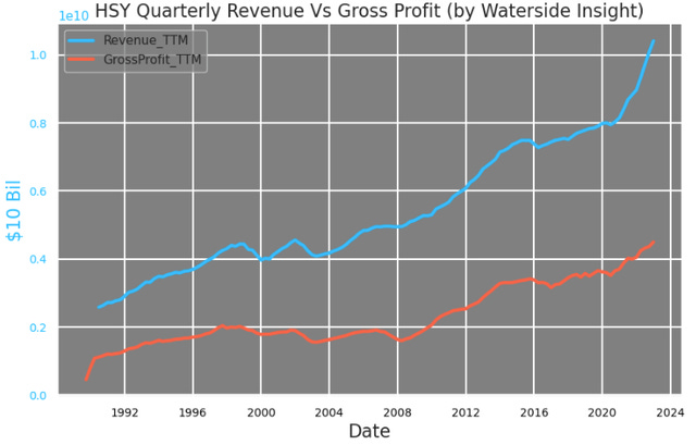 The reality though is that they face the same issues as GIS with the lipstick effect being of large concern for the entire sector. “There is a so-called "lipstick effect" that when facing the stress of economic challenges, consumers would still treat themselves to "affordable luxury" while cutting back on other consumption. Chocolate consumption is part of the affordable luxuries for average consumers. With the looming recession, we want to investigate how resilient the company might be when facing challenges. On top of its long-established brand and reputation, in recent years, Hershey has great balance sheets and cash flow statements to attract investors. Its revenue and gross profit have been at their strongest in its long history.