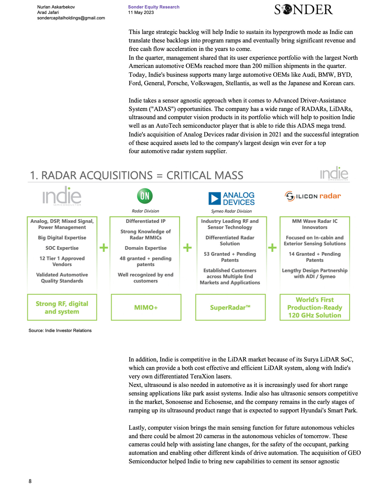 Indie SemiconductorA higher quality version of the report is attached as a PDF at the end3009 Fund ManagementMay 12, 2023ShareSONDER’s Exploration is a reader-supported publication. To receive new posts and support our work, consider becoming a free or paid subscriber.SubscribeIndi10.8MB ∙ PDF fileDownloadDownload