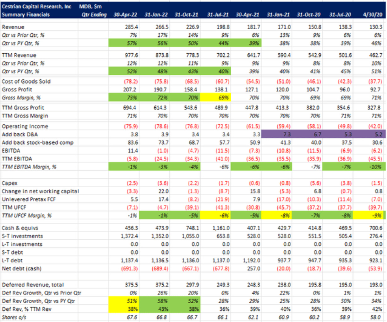 MongoDB was created in 2009 as an open-source, highly scalable, and free database. It also has a commercial version. You can find MongoDB’s source code on GitHub. MongoDB has a reputation for being a versatile, flexible database and is currently used today as the backend data store of many high-profile businesses and organizations such as Forbes, Facebook, Google, IBM, Twitter, and many more. Most database companies have had an amazing quarter this time around as they haven't been affected much by inflation.