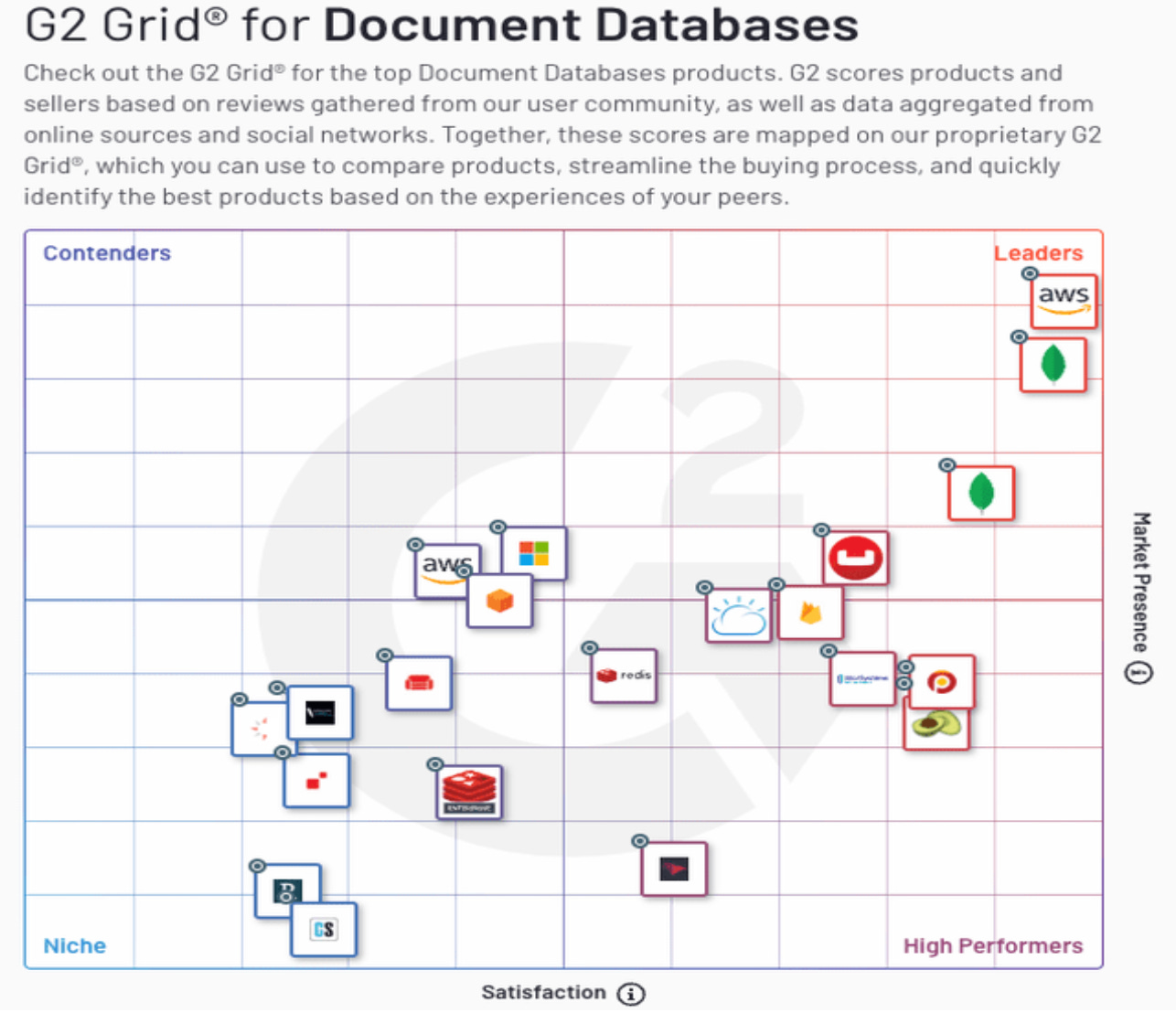Right now in this market, most investors don’t care whether the company has beat the estimates or not. The main thing everyone looks at is the guidance of the company for future quarters. The first thing that stands out is that revenue growth is accelerating. Most economies around the world have some problems right now and so any company that can show not just consistent but accelerating levels of growth attracts the attention of investors. MDB revenue growth was 52% compared to last year based on the April report. Their revenue has been increasing every quarter since the April 2021 quarter. The balance sheet is also solid with approximately $1.8bn of gross cash and $1.1bn of gross debt, leaving $700m net cash. Assuming the company moves into better cash flows, the cash reserves are more than good. So as far as operations go, MongoDB appears to have enough cash on hand to cover operations for years, and since the 2022 operations were cash positive, the expectation of growth into profitability should mean the company will be generating cash, not burning through it. Now let’s take a look at what the company had to say about inflation. During the last quarter, they delivered a +$20M revenue beat. However, management remained cautious for the full year, only increasing FY23 revenue guidance by +$16M. The guidance still provided a 41% year-over-year growth. MongoDB delivered +56% Y/Y growth for that quarter, showing that they could very easily beat the new estimate that they have set. As also mentioned by their COO: “We do anticipate that the current macro slowdown we’re seeing in self-serve and the mid-market and primarily in Europe will eventually impact all geographies and all channels. Simply put, it is our experience and our assumption that it would be inappropriate to think that a macro slowdown would be confined to the low end of the market. However, we also don’t expect that impact will be the same across all channels.” Their management has a track record of underpromising and overdelivering and a large beat combined with a soft raise is more than most investors could ask for in the current market. MongoDB also benefits from healthy relationships with its rivals. For example, AWS became a significant partner, actively co-selling Atlas to enterprise customers. In the G2 Grid for Document Databases, MongoDB and MongoDB Atlas are way ahead of everyone else, only second to AWS DynamoDB in market presence. One reason behind MongoDB’s recent growth is the fact that the company has leaned into its cloud partnerships to broaden its network of potential buyers.
