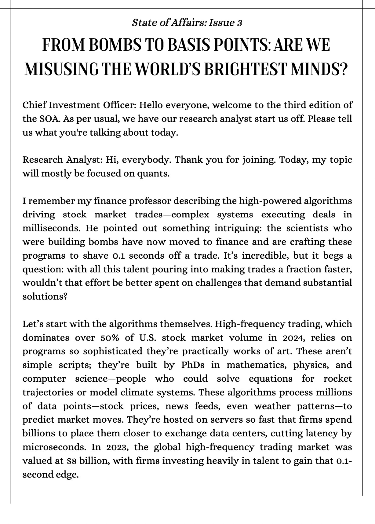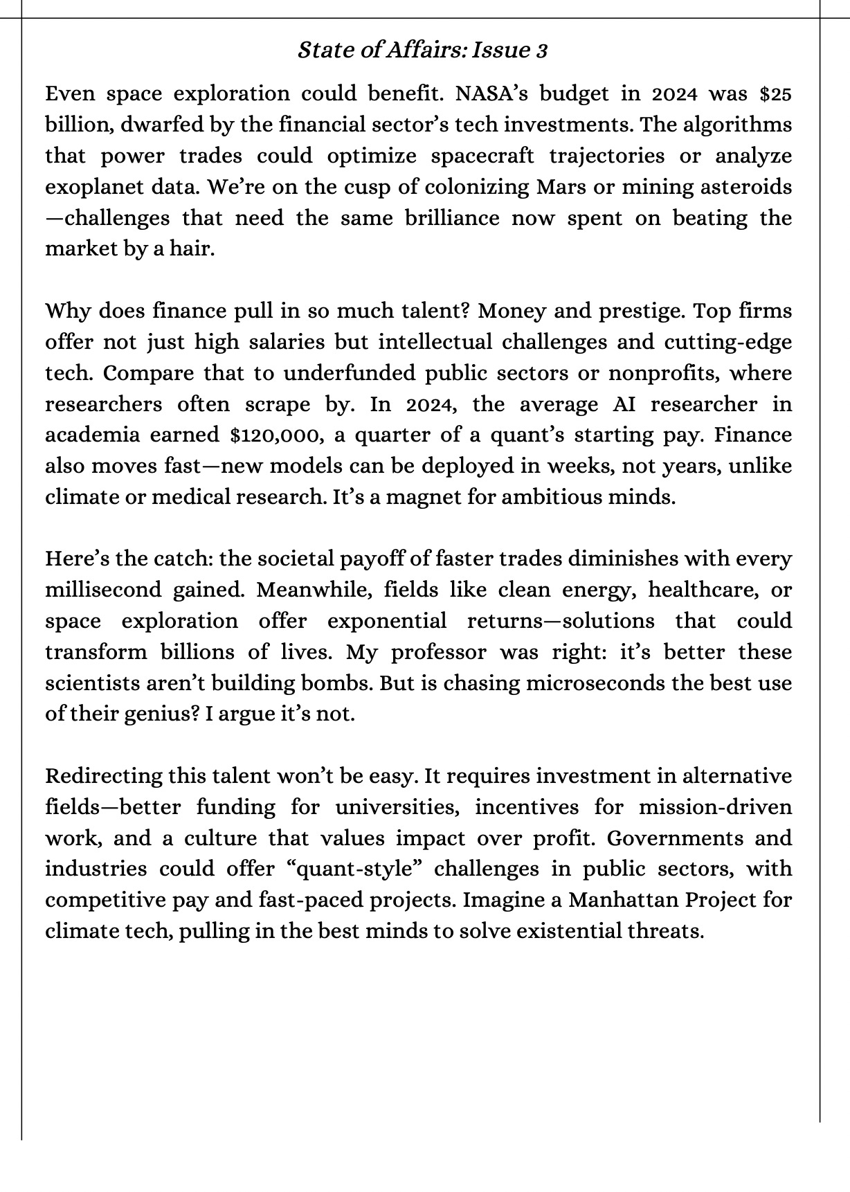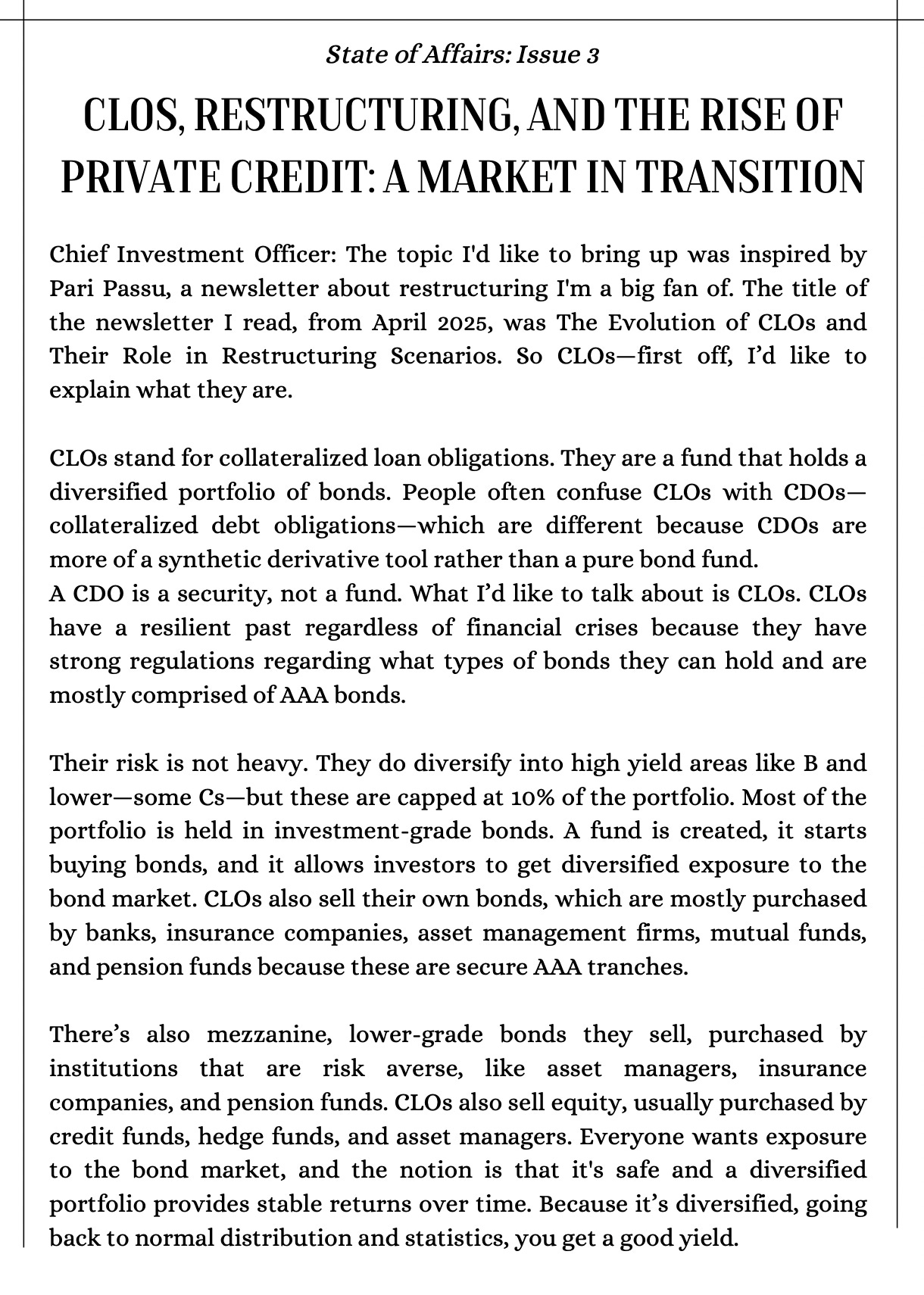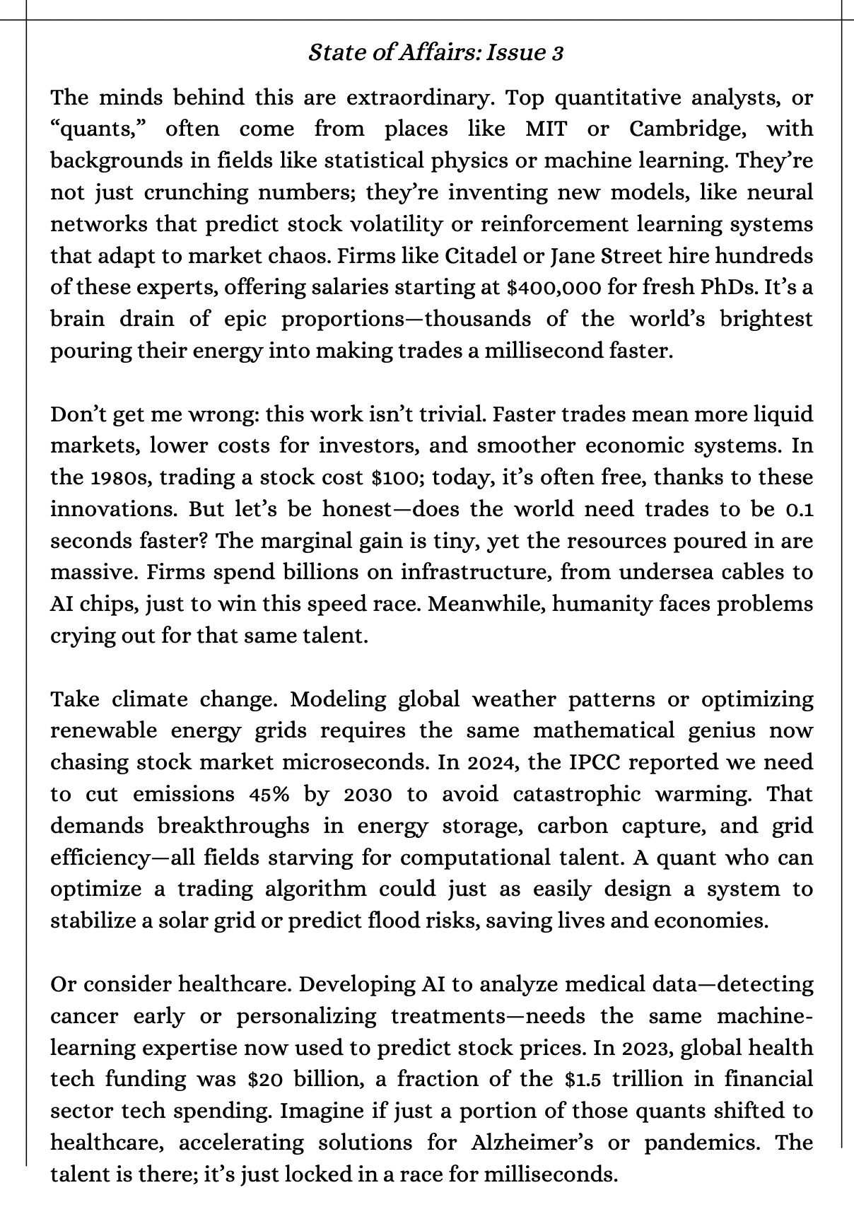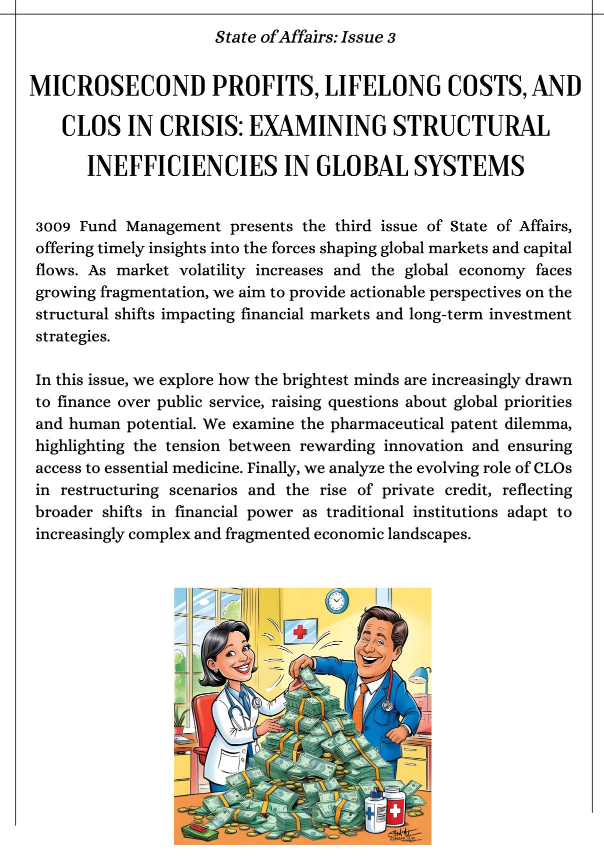 Microsecond Profits, Lifelong Costs, and CLOs in Crisis: Examining Structural Inefficiencies in Global SystemsState of Affairs: Issue 33009 Fund ManagementMay 23, 2025ShareWe’d be grateful if you subscribed. 3009 Substack offers original takes on global markets and the economy, not just recycled finance commentary. Each edition results from careful thought, and your support truly means a lot to us.SubscribeSoa 31.61MB ∙ PDF fileDownloadDownload