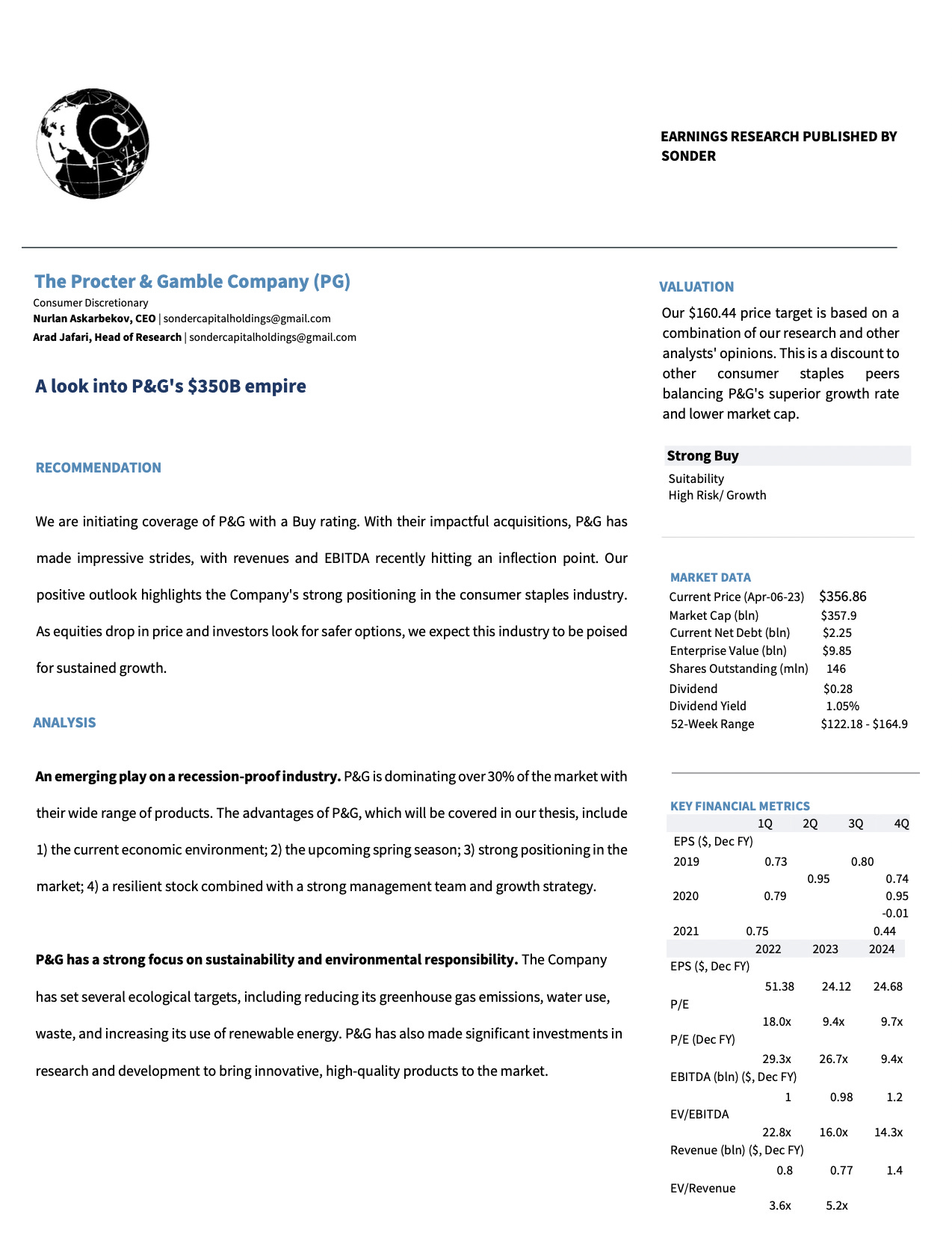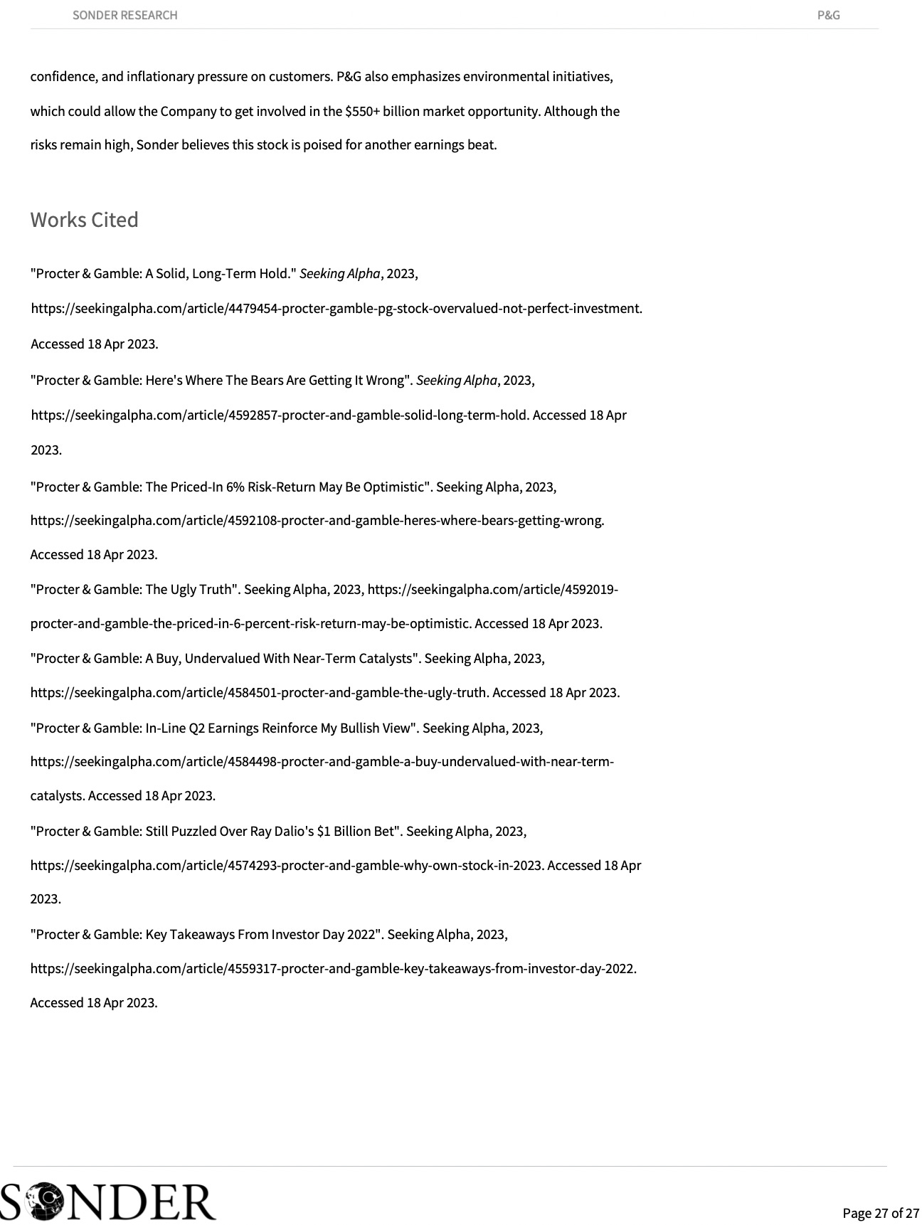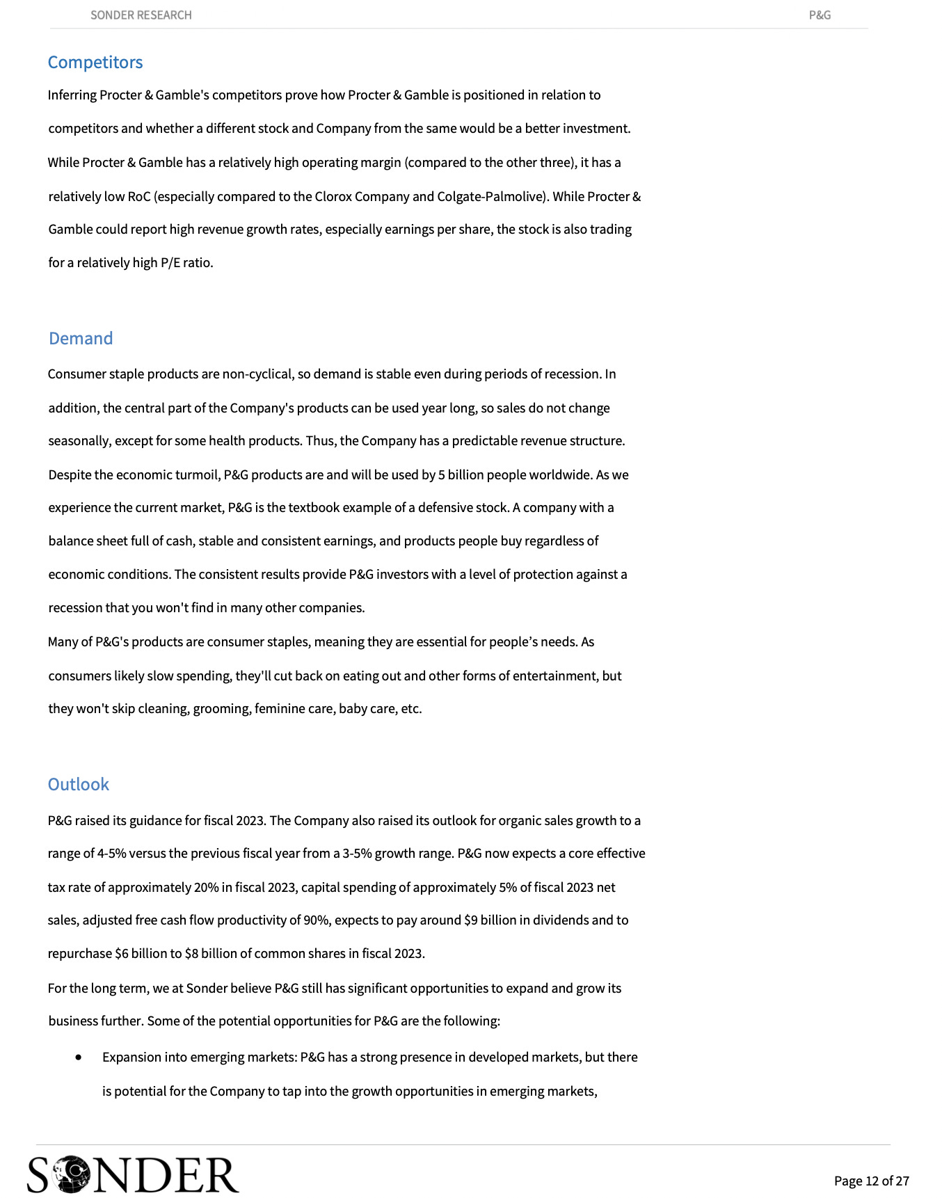 Procter & Gamble Research ReportEquity research report by Sonder in anticipation of Procter & Gamble's Earnings Report coming out on Friday3009 Fund ManagementApr 20, 2023ShareProcter And Gamble7.98MB ∙ PDF fileDownloadDownload